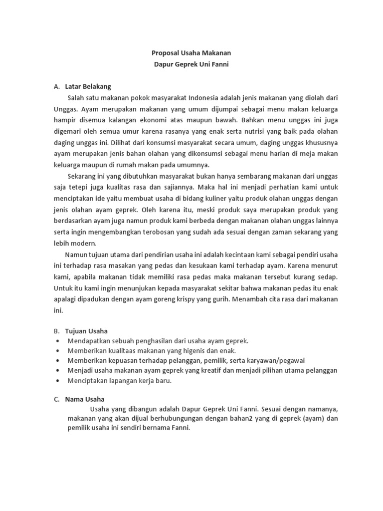 Contoh Proposal Usaha Makanan Ringan from imgv2-2-f.scribdassets.com Maybe you would like to learn more about one of these? We did not find results for: Check spelling or type a new query.